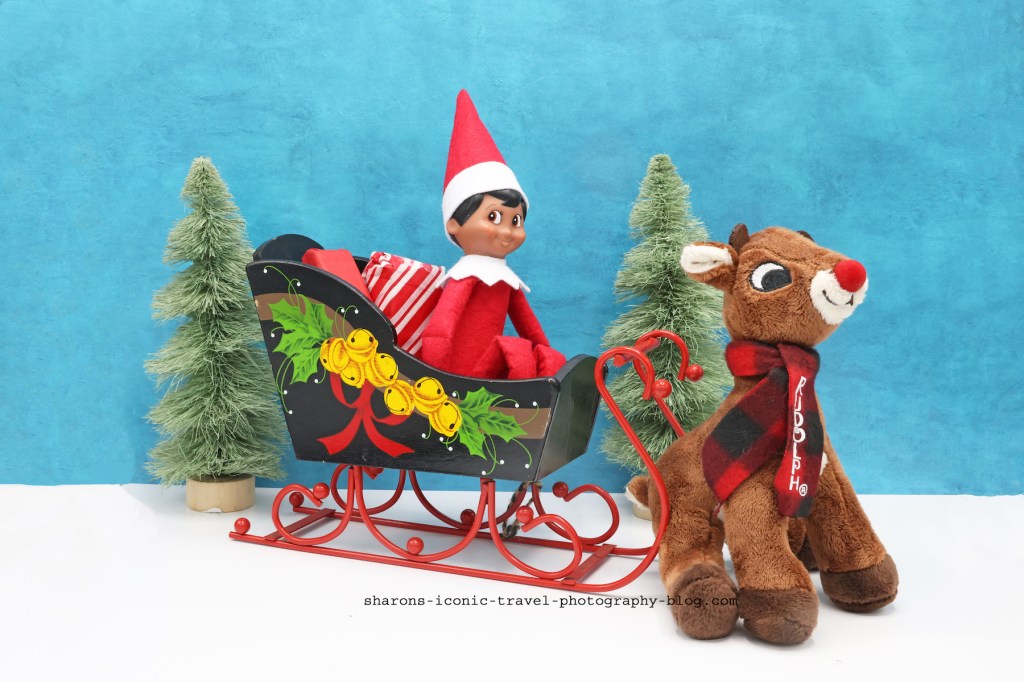 Did the elf sleighjack Santa’s sleigh? Vintage stores and garage sales are great places to pick up some items for your future Elf endeavours. I believe this Rudolph was from the Dollar General.