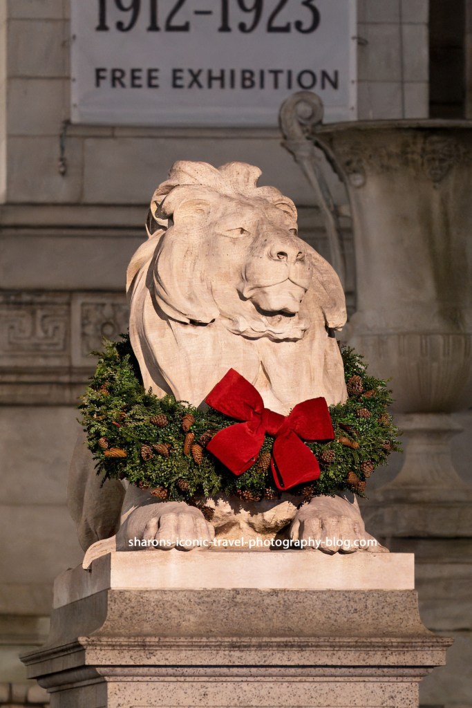 These are the lions outside the NY Public Library Main Branch on the corner of 42nd Street and Fifth Avenue in Manhattan. It actually takes up a city block between 42nd Street and 41st Street.