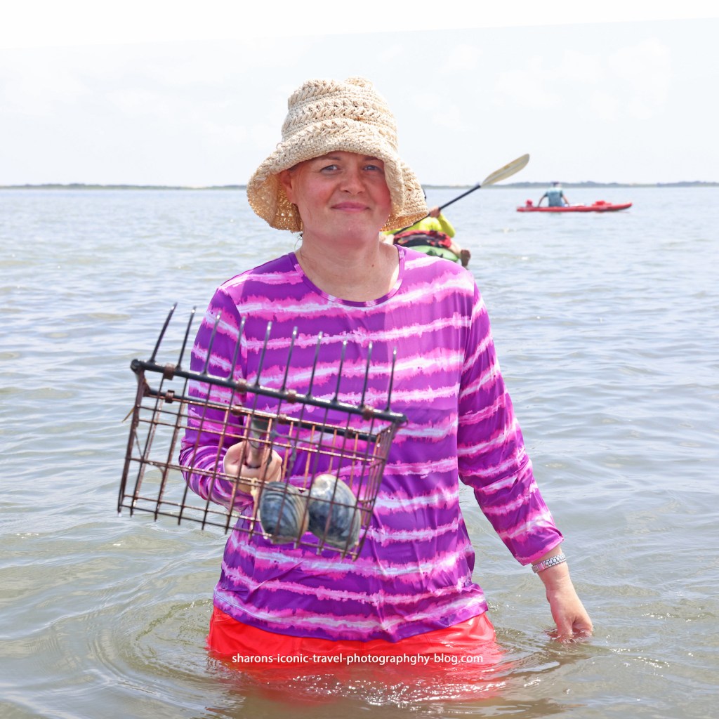 Sometimes other things come up with the clam.A combination rake with basket.Sometimes you can find multiple clams in the same location.He liked to dive under the water to bring them up.She was very happy to find some on her own and add to the effort.He found a lot of large clams in chest deep water.