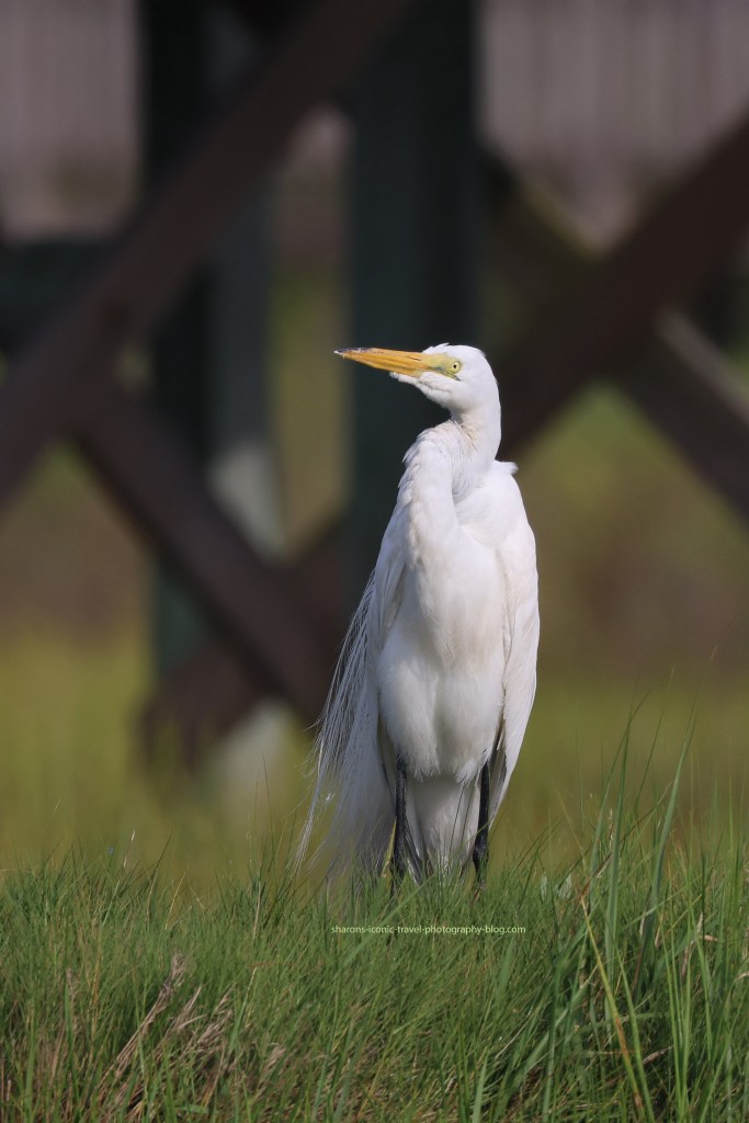 I mostly saw egrets standing on trees, or standing next to the water in the grasses. They pose great for pictures!
