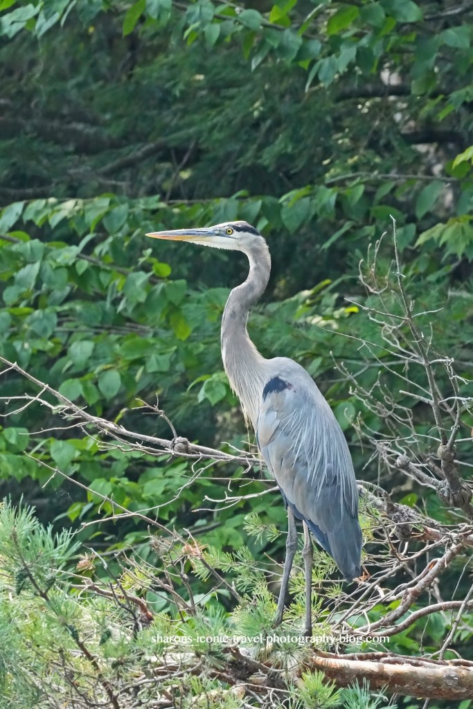 This heron flew into a tree branch on the shady side of an island.