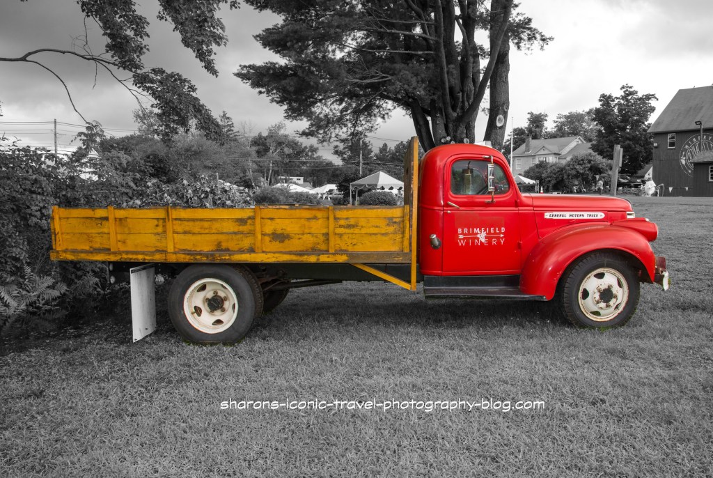 It is another example of using an vintage vehicle to advertise. This one advertises a farm. Go off the beaten path once in a while, there are interesting things to see.