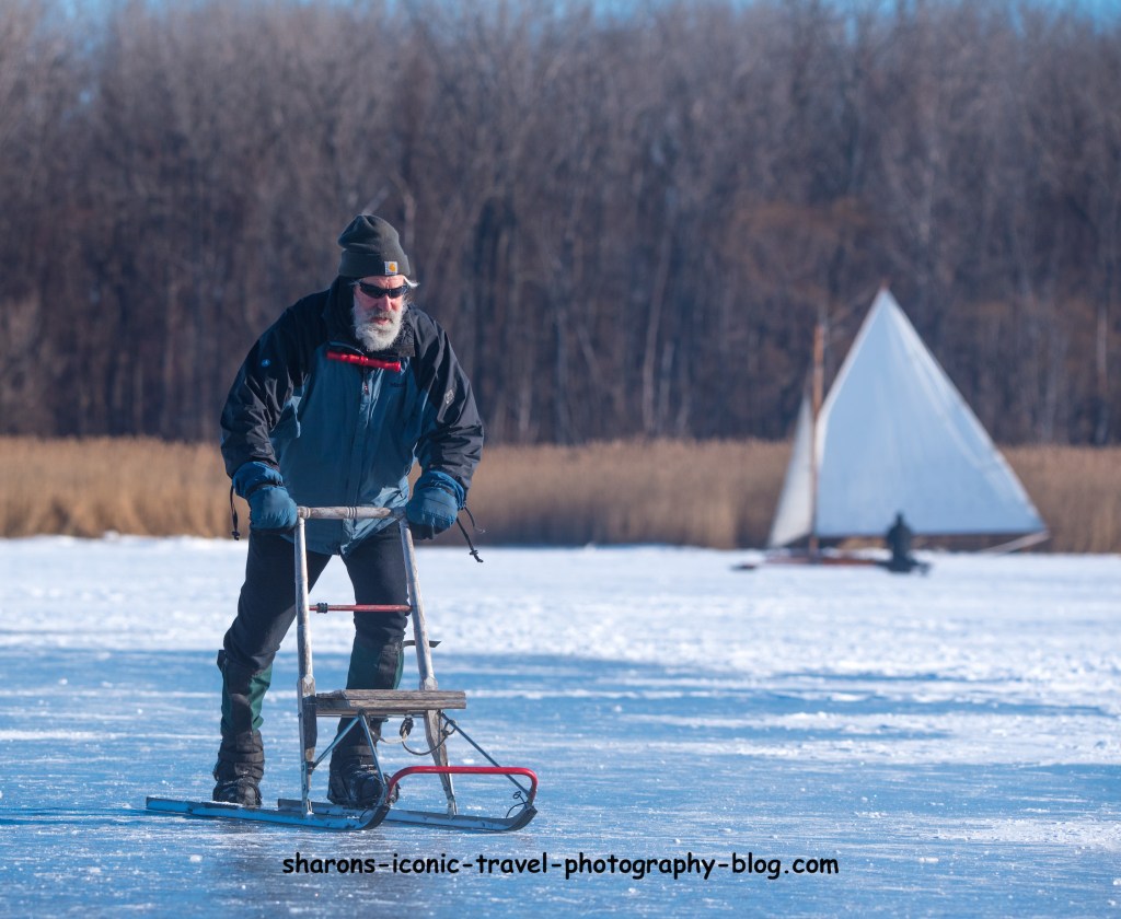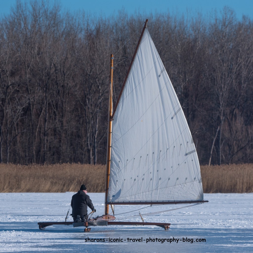 I stopped locals and asked where to see ice boaters. They pointed me north of town to the boat launch. There were several people on the ice and I reasoned if they can do it, it must be safe.