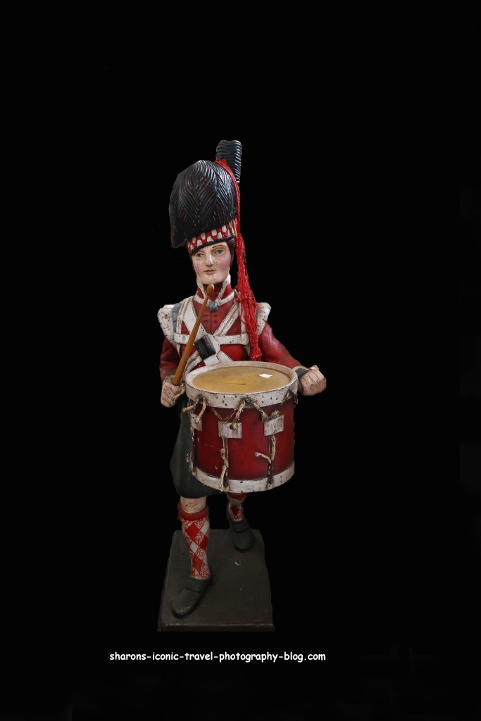 It appears to be modelled on an 18th Century outfit for a Scottish Highlanders regiment.. The socks resemble those of the 42 Highlanders. Feel free to correct me though if you know otherwise. This was actually in the neighbourhood of 3 feet high. This is fancier than most antique phones I have seen.A very unique locker lampOld bed twin bed head and foot frameI really loved the colours on this lamp base.Old Camera- I had to take a picture of this!