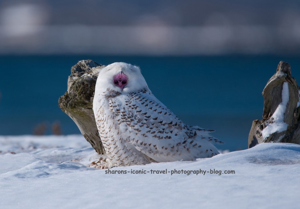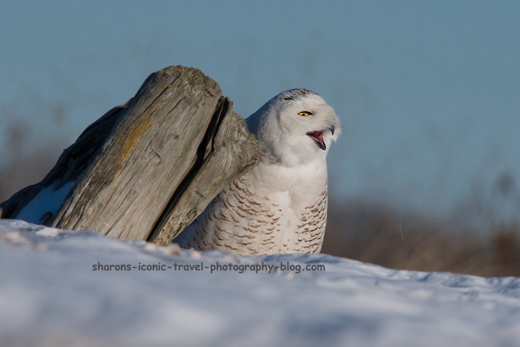 This straggler missed his flight. It appears he will be the last to leave the party. He lingered at his winter abode. There were four snowy owls on the beach. On the day these pictures were taken and the previous day, he was the only owl sighted. Have his three other beach mates started their journey back to the far north Canadian Arctic?