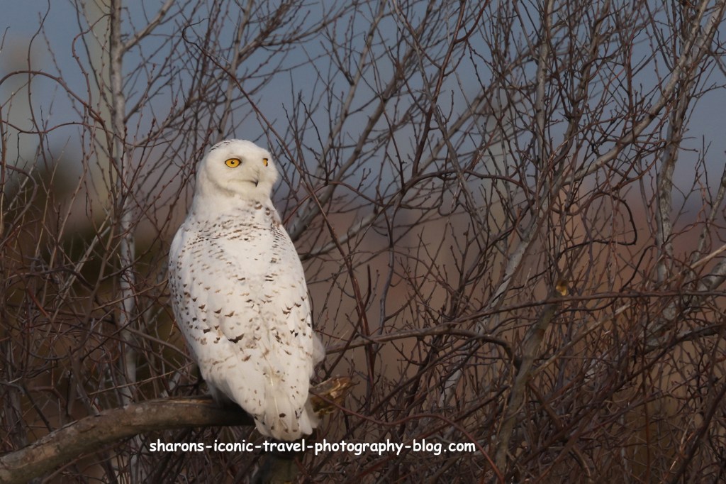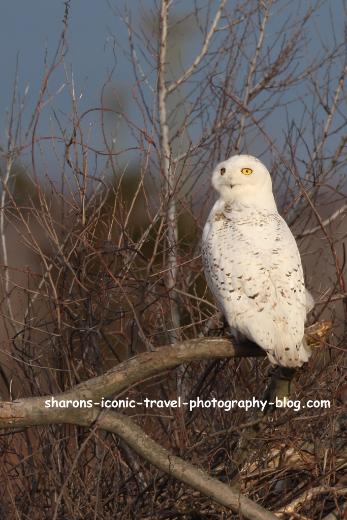 It has been said that the layer of ice on top of the ground might make it harder for the owls and hawks to hunt. The past few days I understand the owls have been more active earlier in the day a few hours before sunset. The short-eared owls have been flying all over the place and making soft landings on various trees, bushes, rocks, etc.
