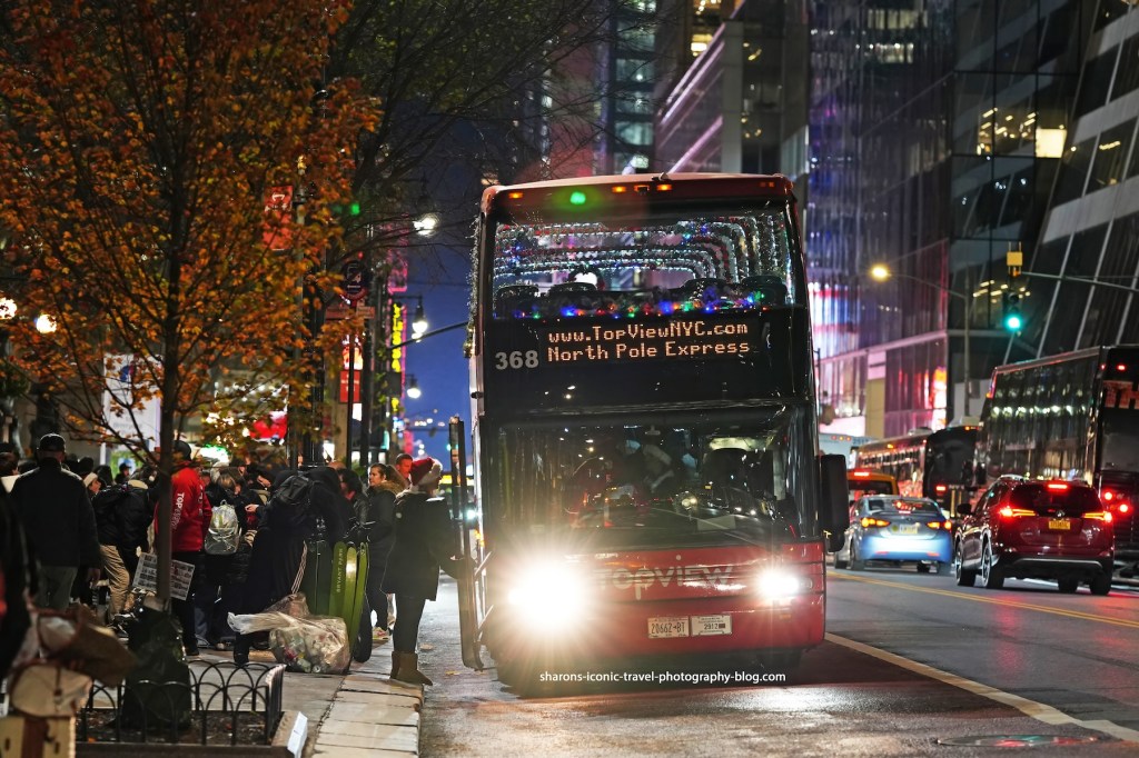 The North Pole Express tour bus picks up on 42nd Street, the street bordering the north side of the park. I hope you had an enjoyable Thanksgiving.