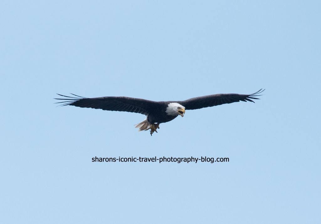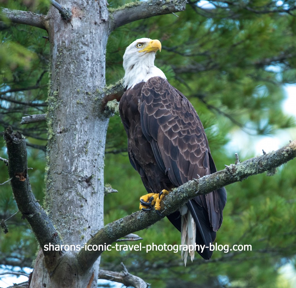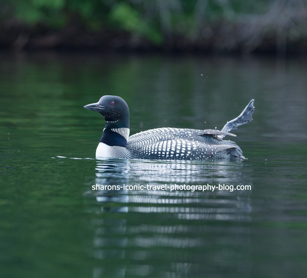 Loon behaviour on this pond was odd. I did not see them stick their heads above water for long and they did not hang out long on the surface at any time. I watched them the first day. The second day I saw the eagles. I attribute the loons’ behaviour to the eagle’s presence. Eagles will go after ducks and loons and their young. I did not see young loons on this pond. A local told me the eagles have been visiting for three years and they have not seen loon young in three years. They tie the two events together.