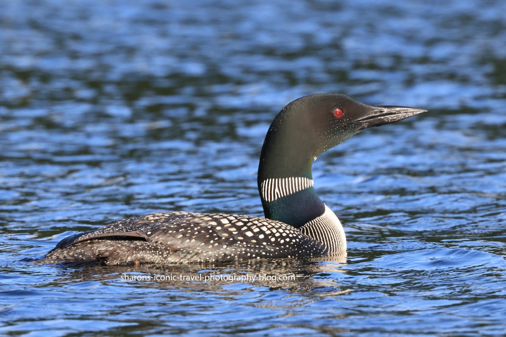 This is a loon from Upper St. Regis in the Adirondack Mountains of New York. In other pictures that day, the water appeared green and different shades of blue etc. Change sometimes is good.