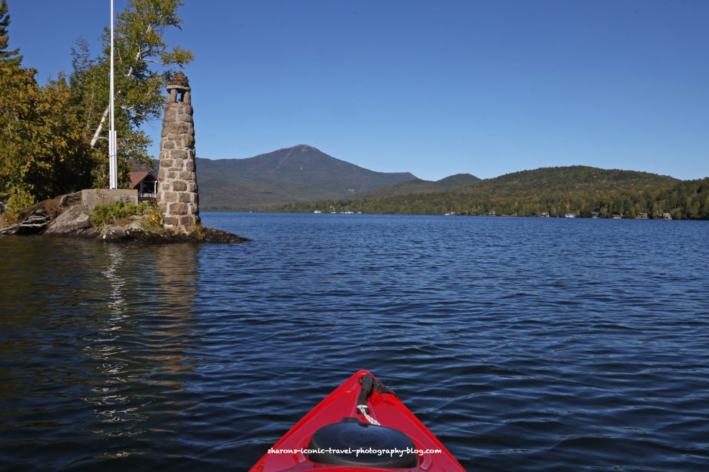 Correct me if I am wrong, but I think that is Whiteface Mountain in the background. The issue with large lakes in the Adirondacks is many times when you get away from shore it can be quite windy. On my long trip the first day I was there I did fine hugging the island on the way towards Whiteface landing, but on the return when I crossed the lake to the east side is was a struggle to head south hugging the shore. The wind was pretty strong. I did see a few other kayakers out there. I think one whom I talked to briefly ended up getting a ride on a boat. I was too busy trying to paddle to get any decent pictures on the return.