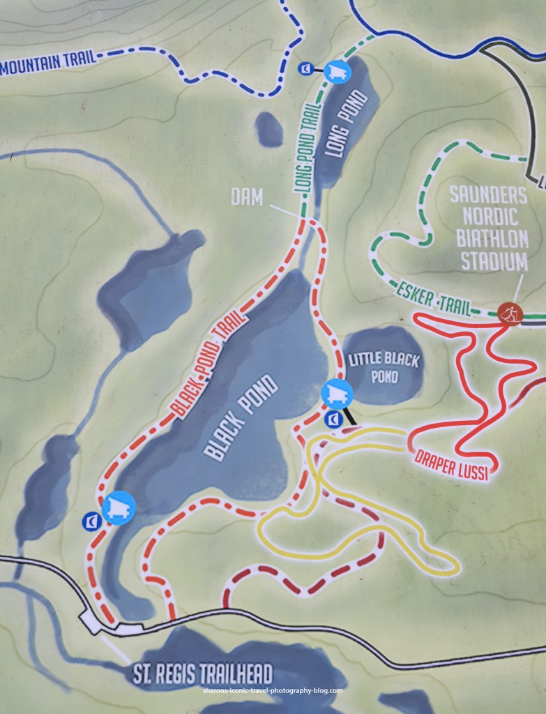 Black Pond’s parking lot can be accessed off Keese Mills Road in Paul Smiths, NY. It is a small lot that holds maybe 6 cars.