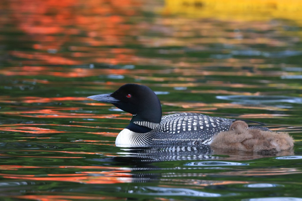 This was the first time I was lucky enough to see a baby riding on its parent’s back. I have been up looking for this in June and July in previous years, but missed out in the past. I went up to stay for two nights, and made three kayak trips on Loon Lake. I saw them each time.