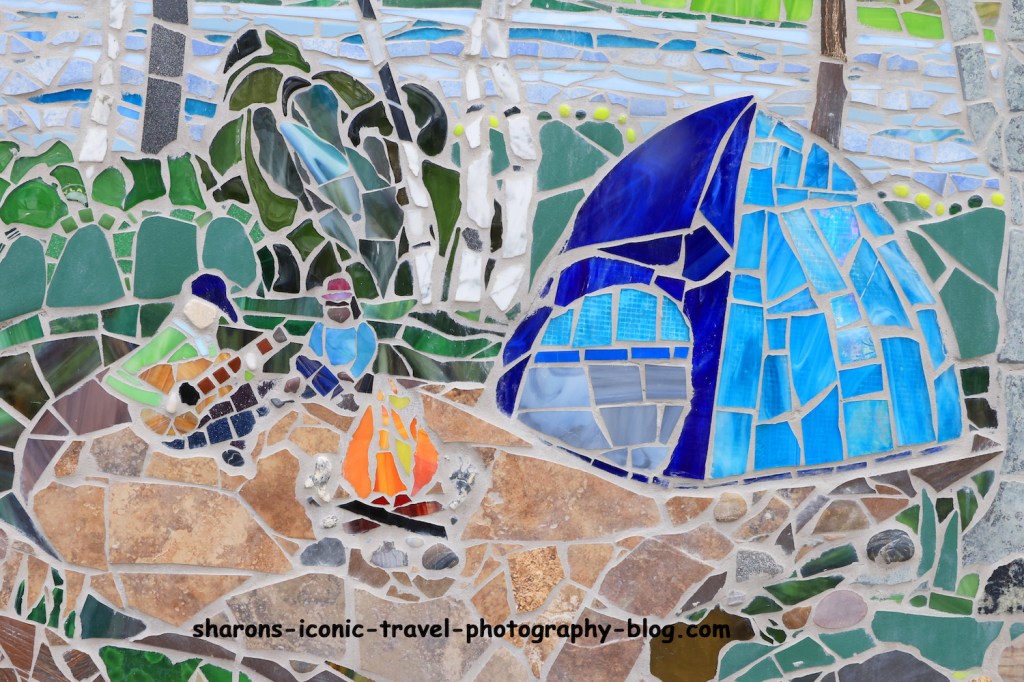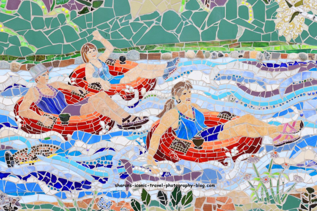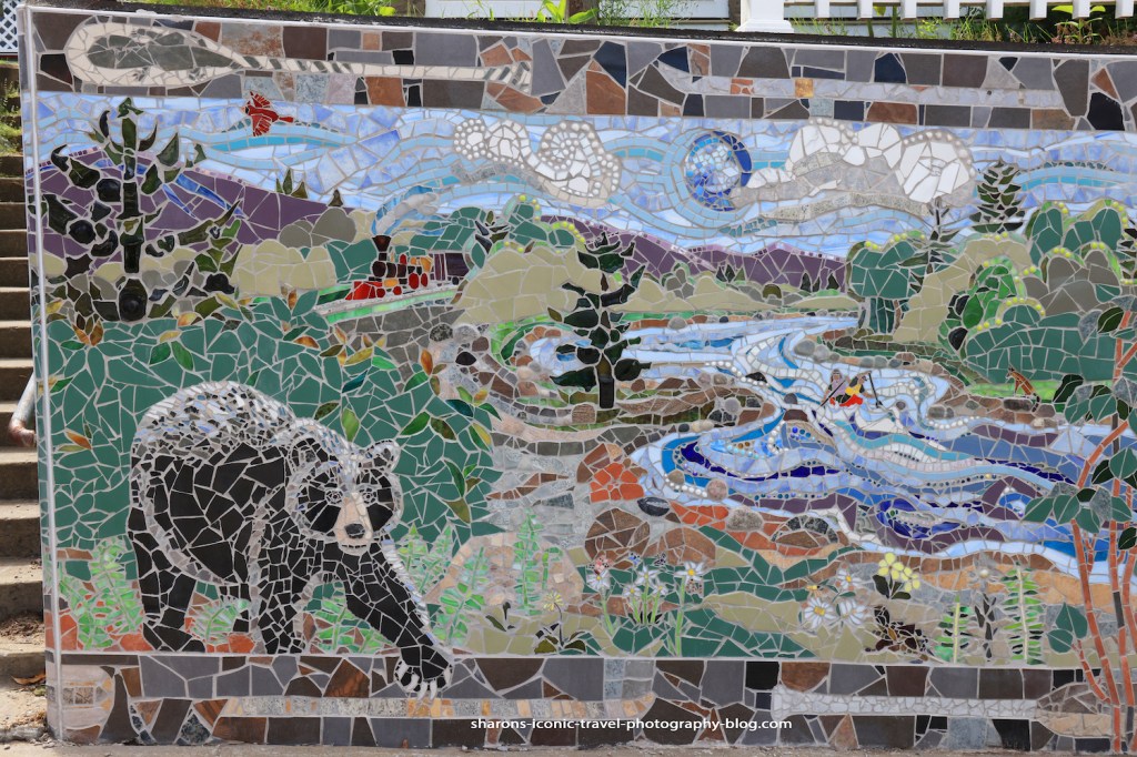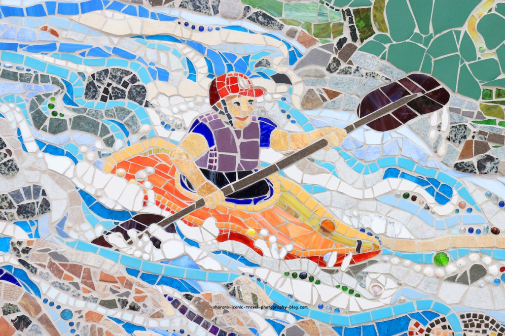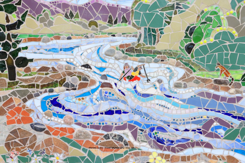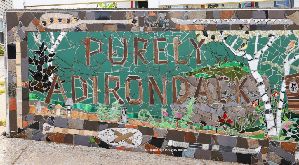 Again these pictures do not represent the entire mosaic. I love seeing artwork like murals and mosaics. It is always a bonus to find out it was a community project. I think this mosaic did a great job representing the local area. If you are skiing Gore in Winter or White Water rafting the Hudson River, stop by and check out the mosaic. It’s Purely Adirondack.