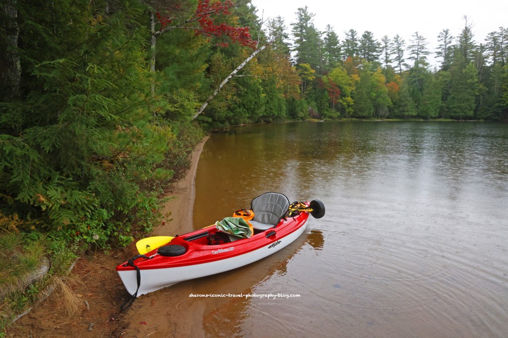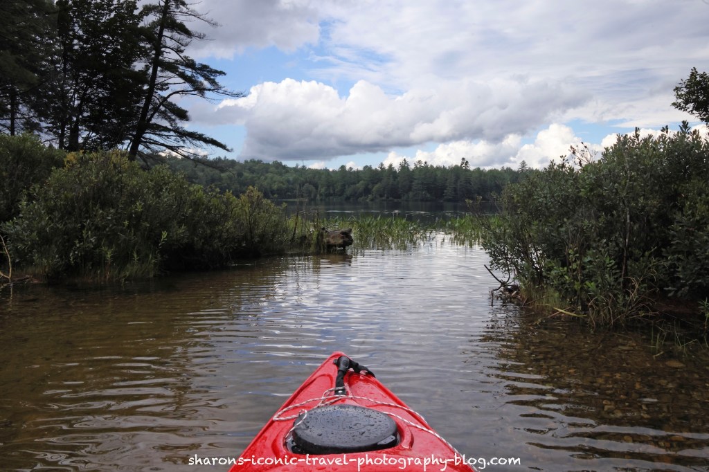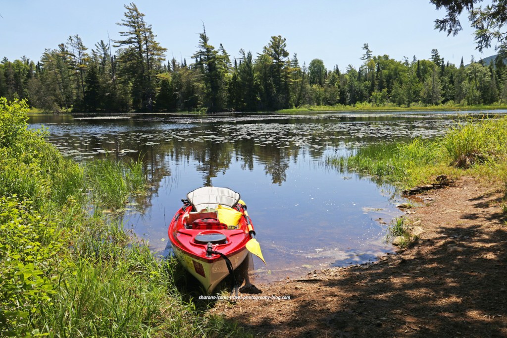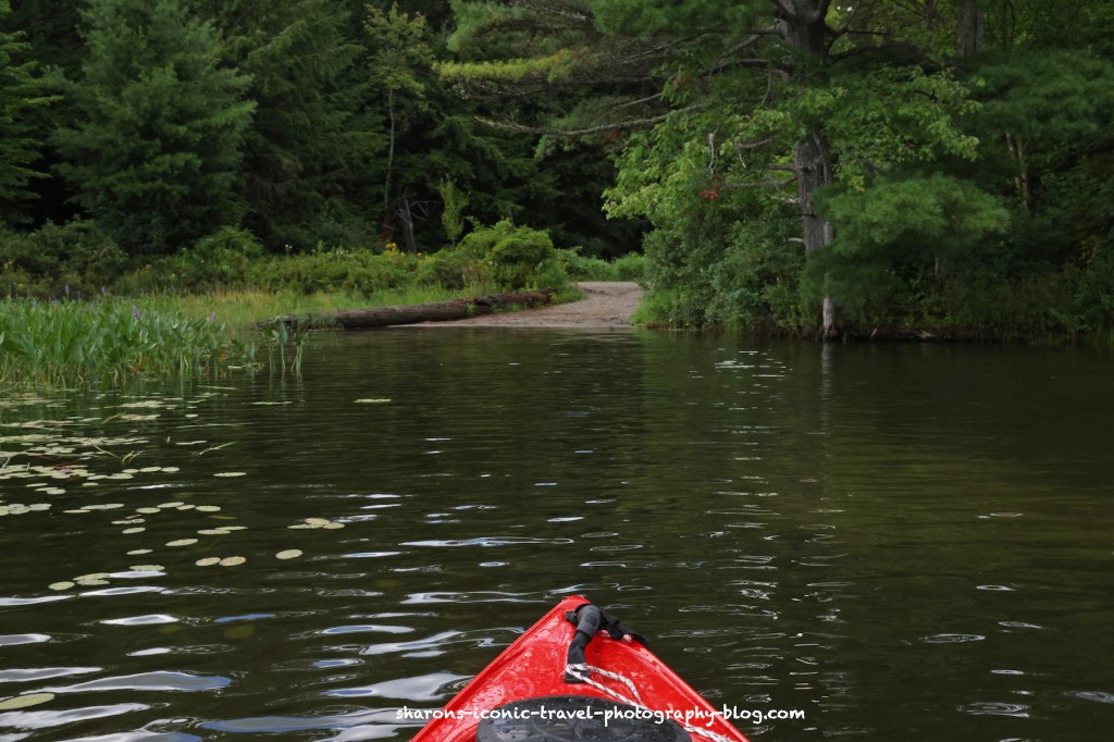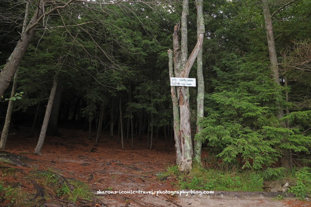 I definitely want to return to this pond on a nicer, rain-free day, however, I recommend using the canoe carry on the western end of the pond. If you do not have a kayak /canoe cart, I recommend renting one from St. Regis Canoe Outfitters. Even on the shorter western end of the pond it is a long carry to the water.