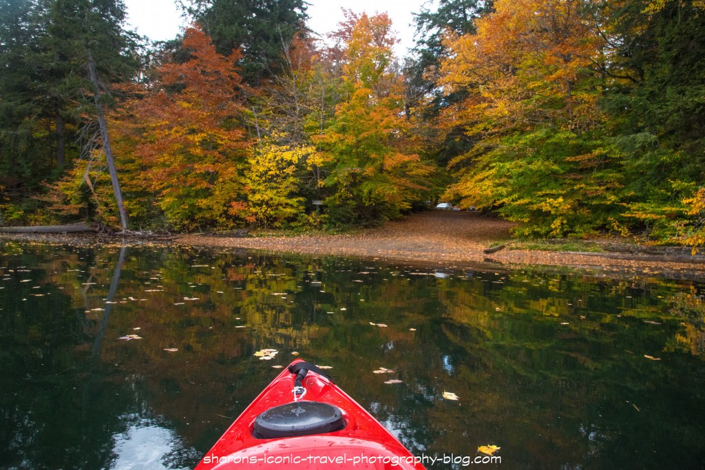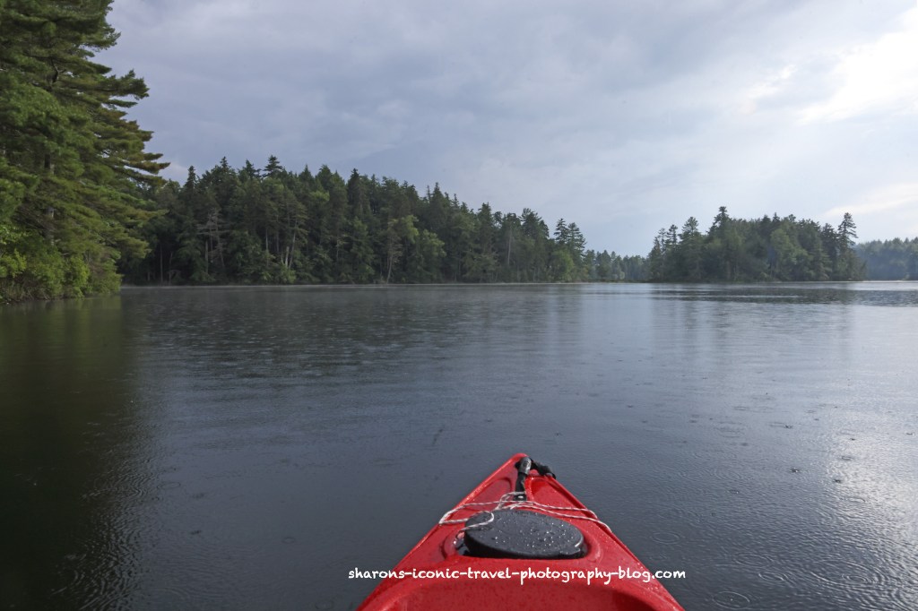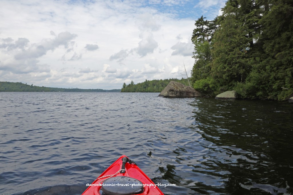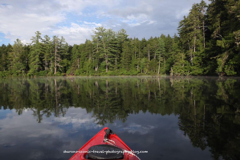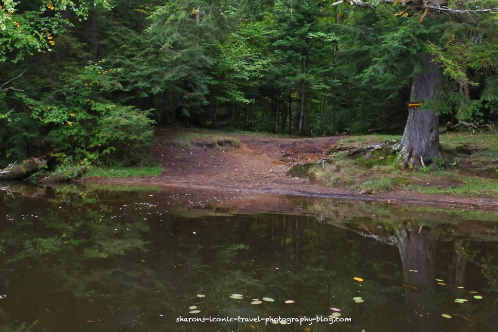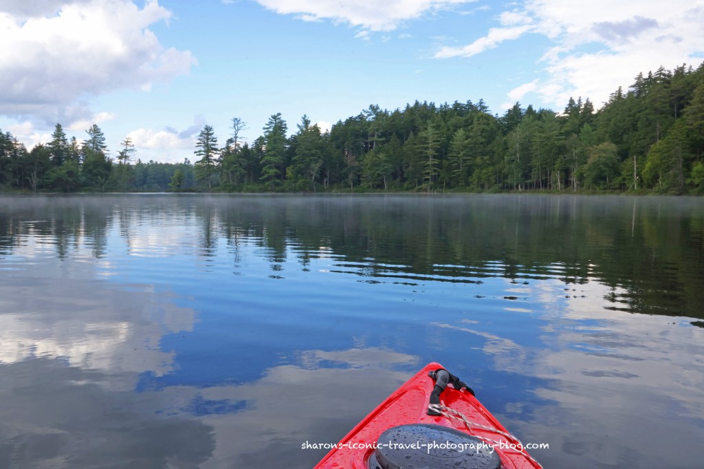 I definitely want to return to this pond on a nicer, rain-free day, however, I recommend using the canoe carry on the western end of the pond. If you do not have a kayak /canoe cart, I recommend renting one from St. Regis Canoe Outfitters. Even on the shorter western end of the pond it is a long carry to the water.