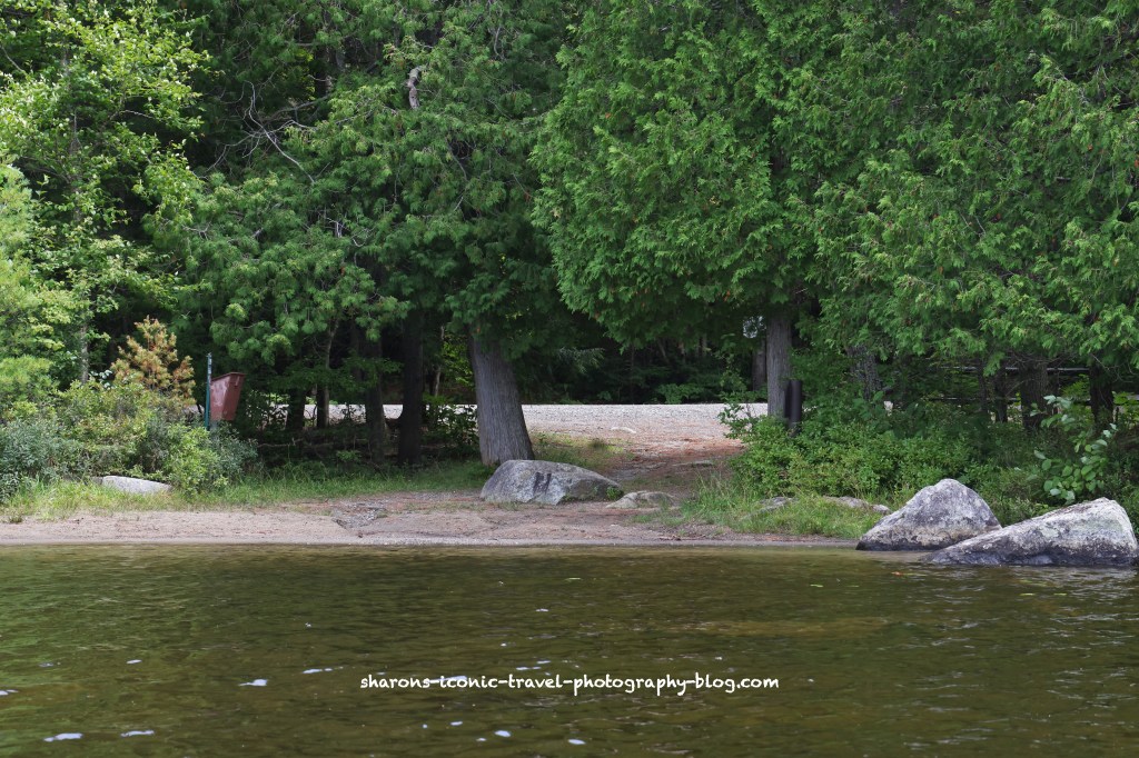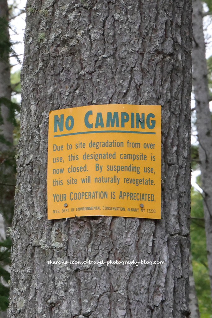 The campsites along the shore of Long Pond spaced apart. They are all free, first come, first served. As you can see by the sign, some of the campsites were closed to allow for revegetation. While there I saw leaving from camping overnight. I saw one person with a campsite set up who was remaining, and I saw others paddling in with camping gear heading off for their campsites.