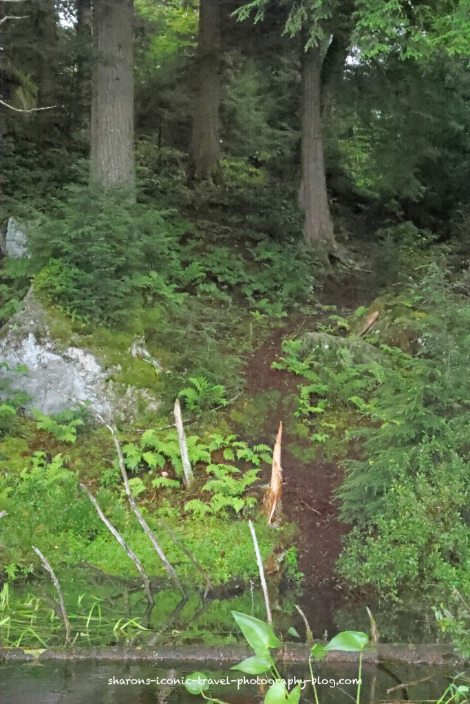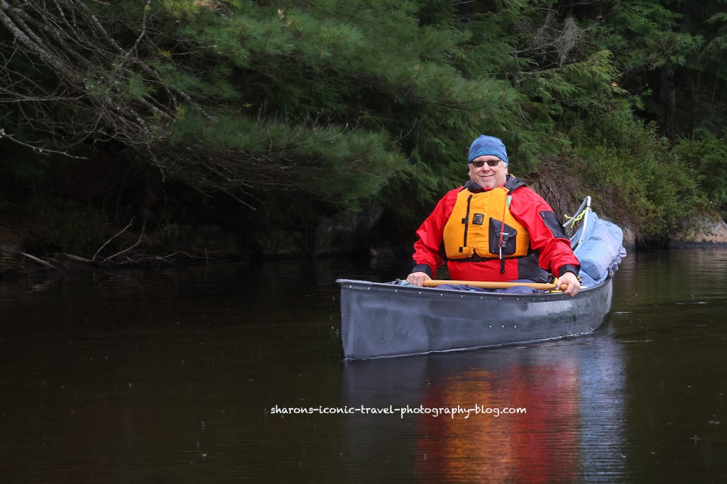 You can’t tell in these photos, but it was raining most of the trip. I did see 5 loons on my return. There were two pairs hanging out together and one by itself. Because of the wet conditions I did not want to have my camera out of the bag for a long time, so no loon photos. I also saw a great blue heron on the lake and heard kingfishers.