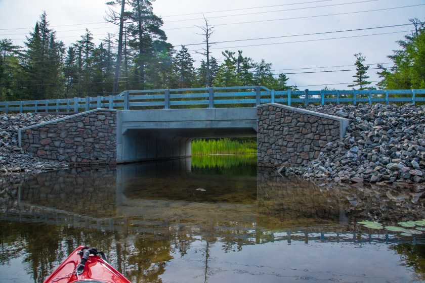 You paddle under this bridge near the boat launch if starting from Follensby Clear Pond. I ducked my head the whole time. It is kind of low. Be careful going under it.