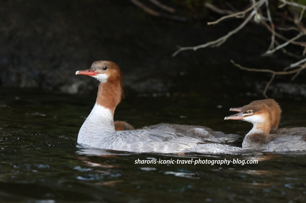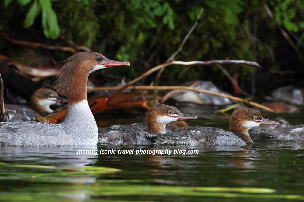On the way up to Canada to visit some relatives and on the return as well I spent a few days in the Adirondack Mountains kayaking on different lakes and ponds. One one body of water I was lucky enough to witness several types of wildlife. One bird I saw was the merganser duck.