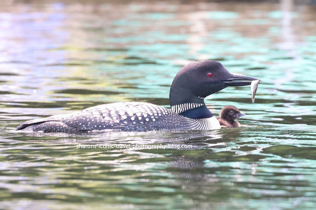 Mom continued to swim around with the fish in its mouth hoping the baby would change its mind. Who knew? My new summer side hustle in life is a loon babysitter.