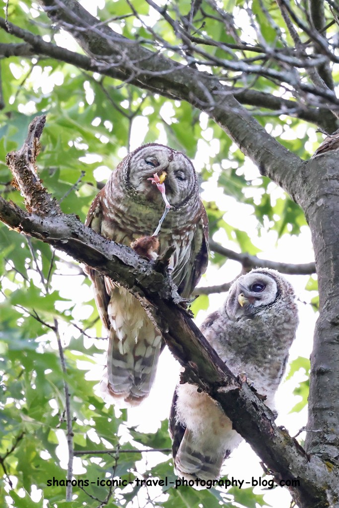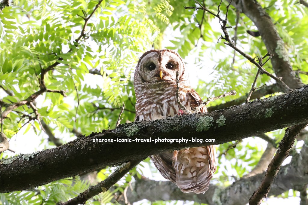 I usually only see owls deep in the woods and not in open areas. This is a barred owl. I was lucky enough to take a lot of pictures of it in a short time period from the road.