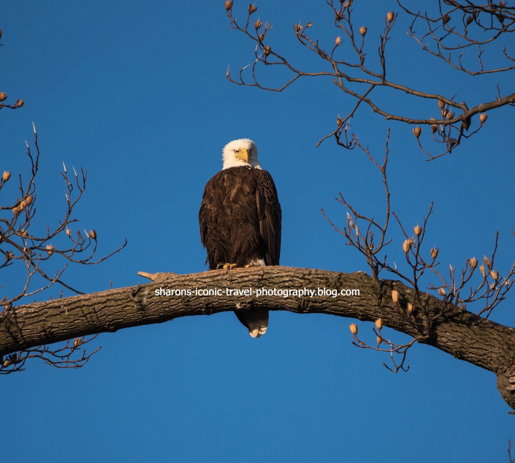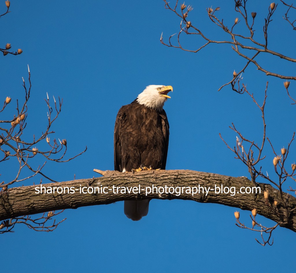 The eagles from this nest tend to grab grass from the field below and branches and sprigs from nearby trees. The parents lost an eaglet each of the last two years. Here’s hoping the three in the nest grow up to reach adulthood. The parents are keeping them well fed and are doing their part to try to keep them safe. Fingers crossed.
