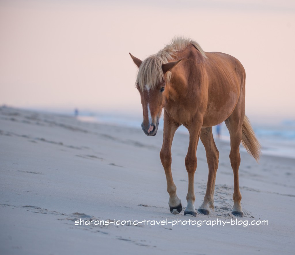 Two out of the three mornings I was there I saw horses at sunrise on the beach. They will wander through the campgrounds at the state park and national park. They say to keep a distance away from them as they are wild and can charge. I tried to keep a distance, but the one above kept getting close to me. He was good at posing for pictures.