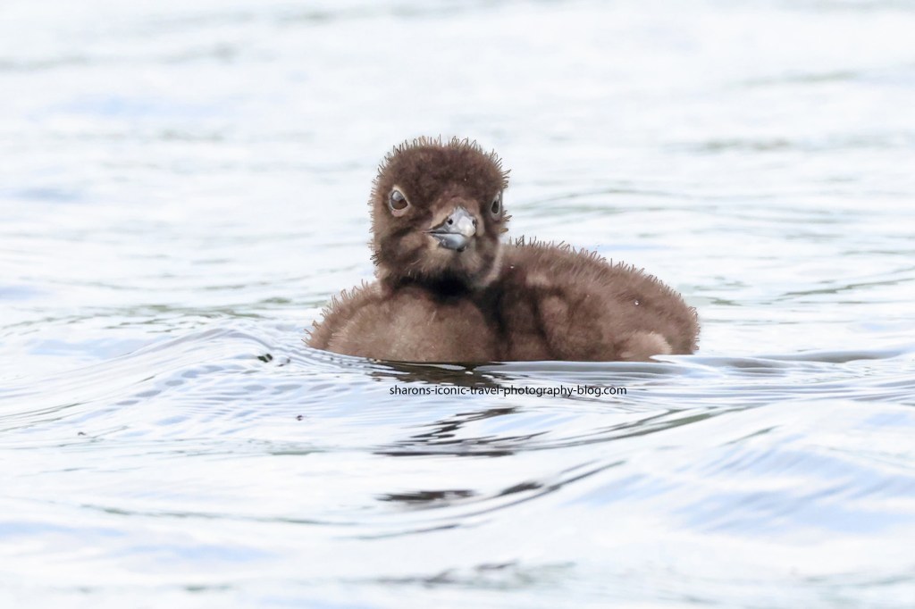 The mother and baby swam up close to my kayak, then the mother disappeared under the water to fish, while the baby stayed above water chilling out near my kayak. Normally the baby swims in the water following the direction the mom went under the water in peeping all the way. This time the baby was quiet.