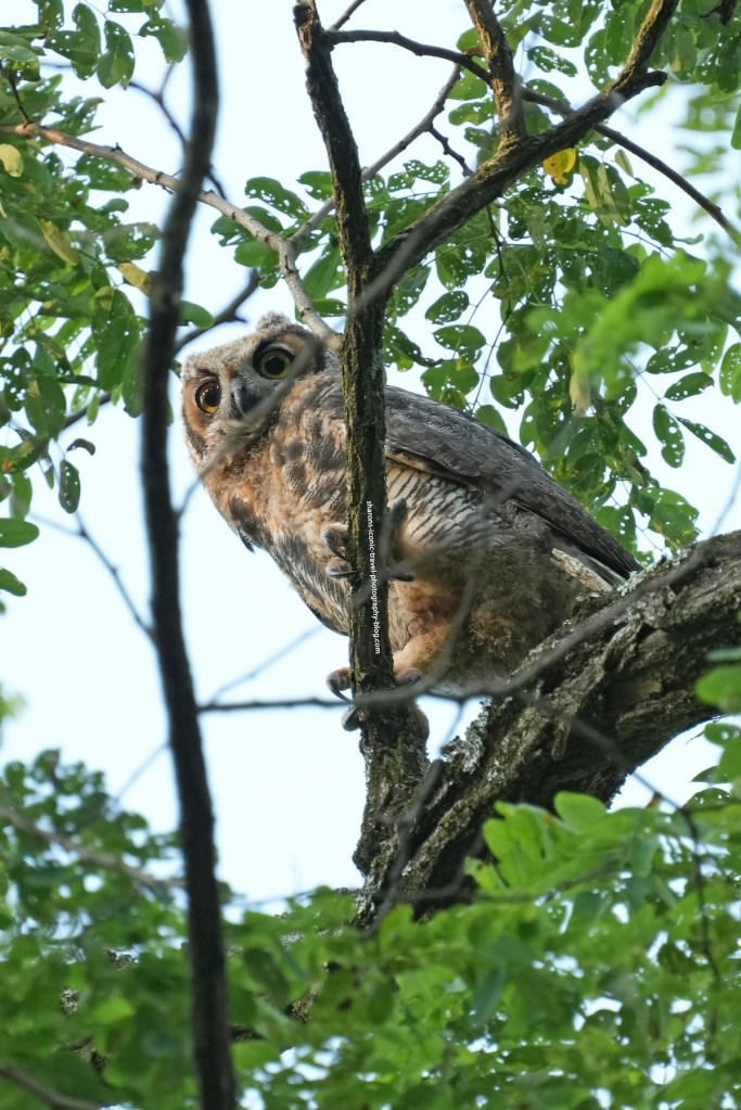 I knew it was a great horned, but a friend messaged me it was a juvenile after I took a picture with my phone of the back of my camera. It is still fuzzy on the head and the ears are not quite like an adult’s ears yet.