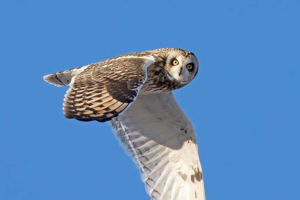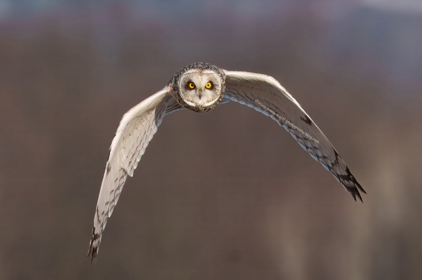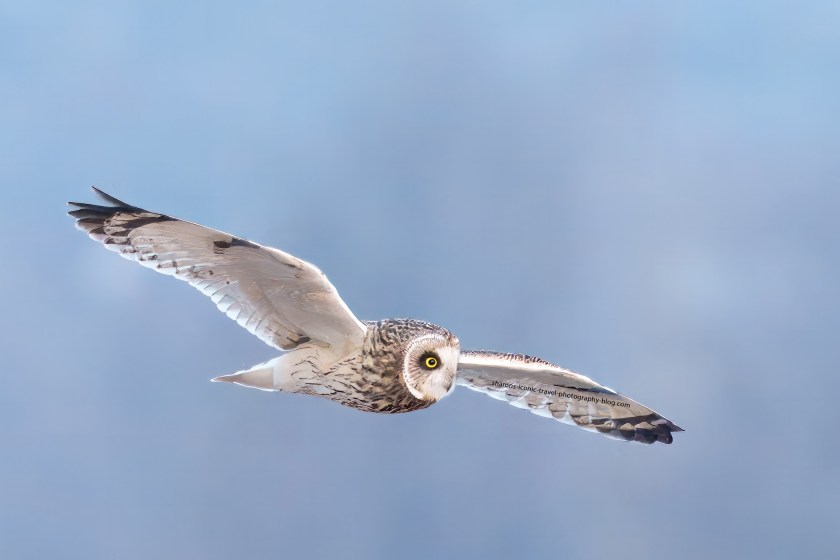 You usually do not see the ear tufts on the short-eared owl. I thought it could have been because of the wind, however, according to National Park Service website: