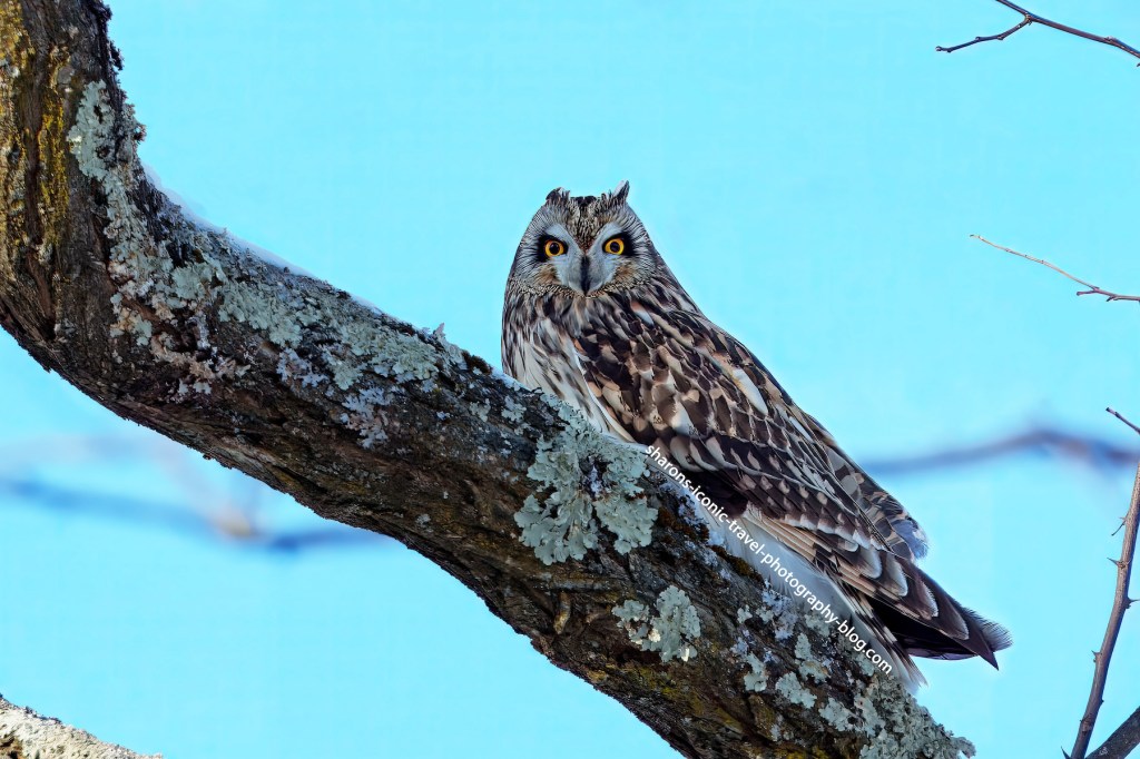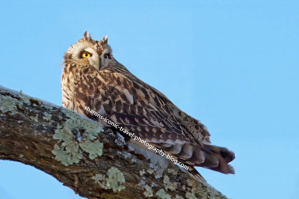Short-Eared Owl in a Tree January 2025- sun was behind the clouds