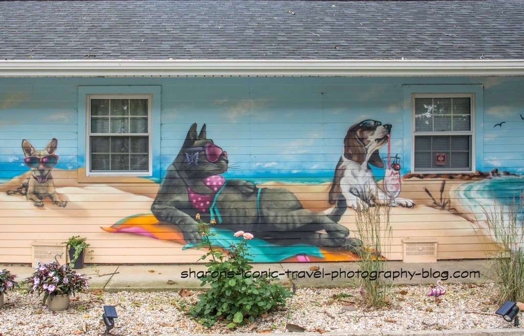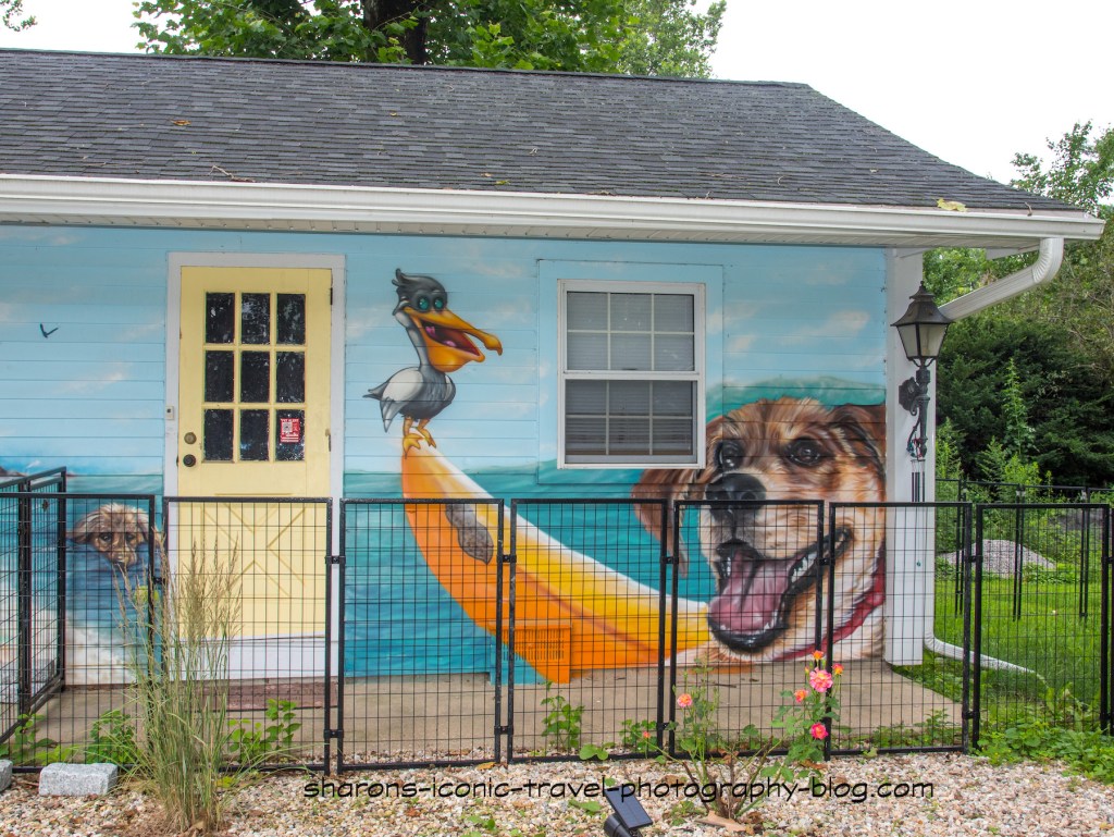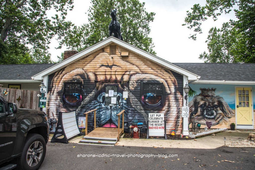 How do you make you business eye catching? One way is by painting a mural related to your business on your building. I found this on the way to meet someone. This is a pet dare care/ hotel. Most of the images are dogs, so I am guessing that is what most of their clients are. This is in Connecticut.