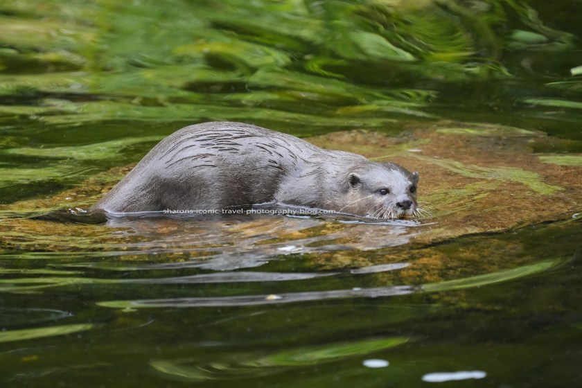 When I came upon this very close to sunset, three ladies were watching it. I never saw it’s tail. They said it was slapping it on the water. I think it is either a muskrat or a beaver. I passed by this area earlier and heard a slap on the water and assumed it was a fish jumping. It may have been this animal.